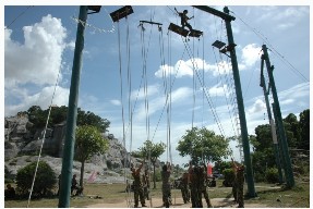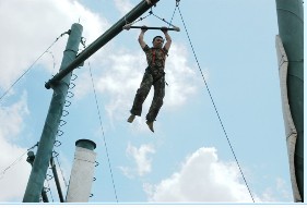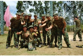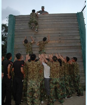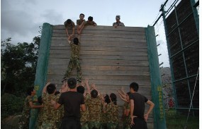 在拓展中,每个队员都在体会其中的感受:了解团队的团结合作以及挑战自我,只要敢于面对困难,最终还是会成功的。